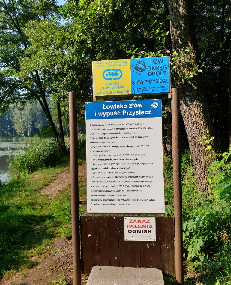 Zakaz zabierania z łowiska ryb gatunków - karp, amur, szczupak.