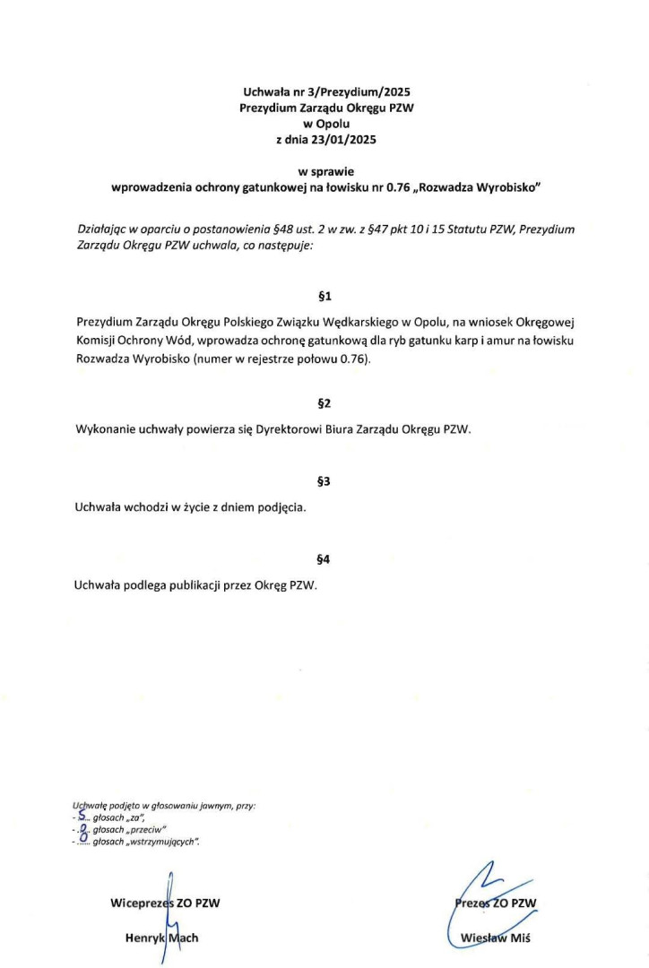 Przynależność: Okręg PZW z/s w Opolu